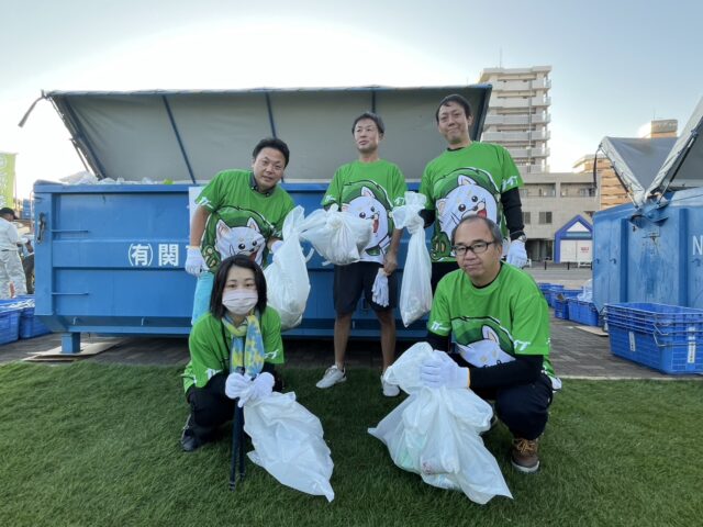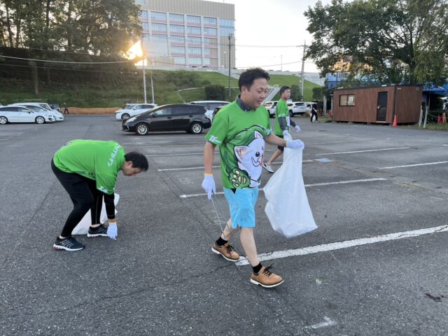 会場周辺の歩道や駐車場に残った空き容器・紙ごみ等の回収と分別を行い、地域の皆さまや関係団体の方々と協力して清掃活動に取り組みました。
